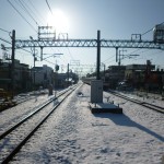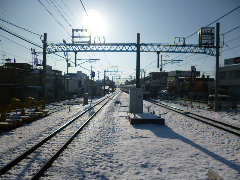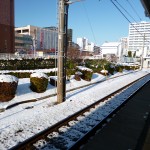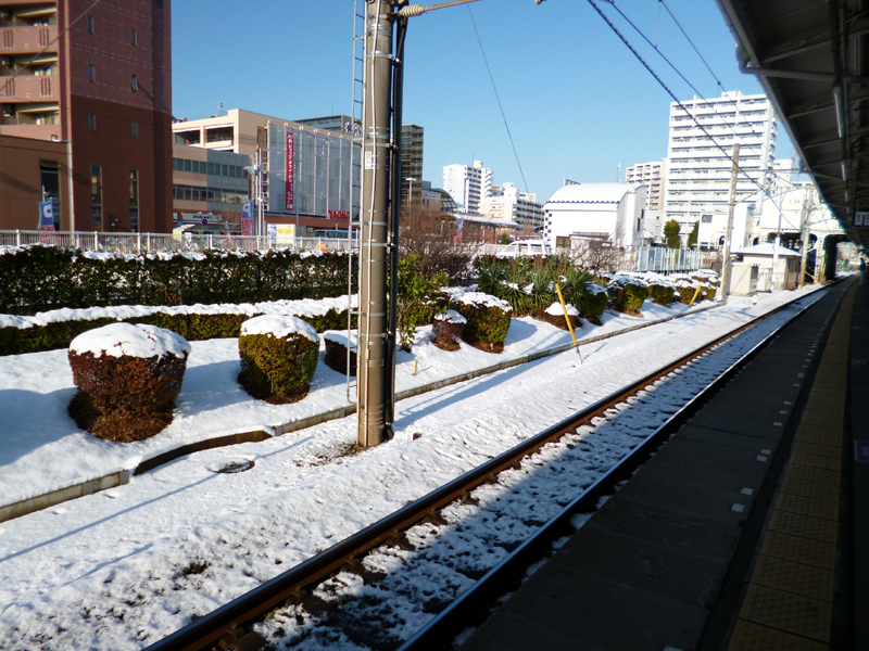 14日に降った雪で、15日の朝は世界がガリガリに凍り、道がツルツルでとっても怖い朝でした。 バスのタイヤチェーンのじゃらじゃらという音を聞きながら、ゆっくりゆっくり歩いて駅まで向かいました。 駅もまだ、真っ白。 仕入先も、売り出しにかかわらず、少ない人出です。