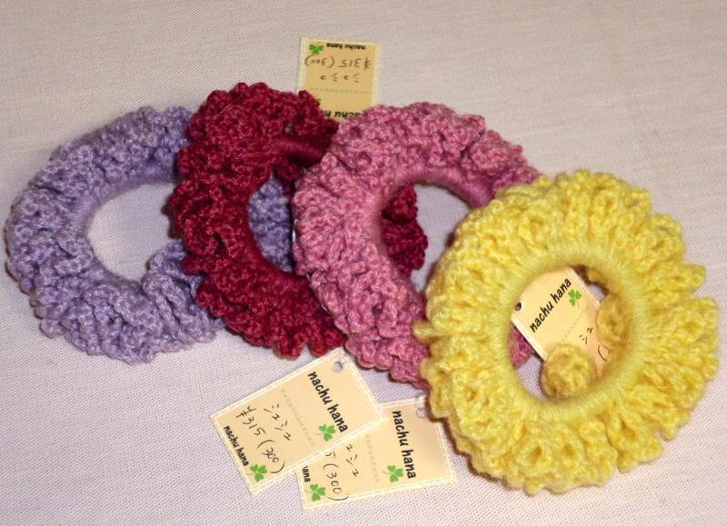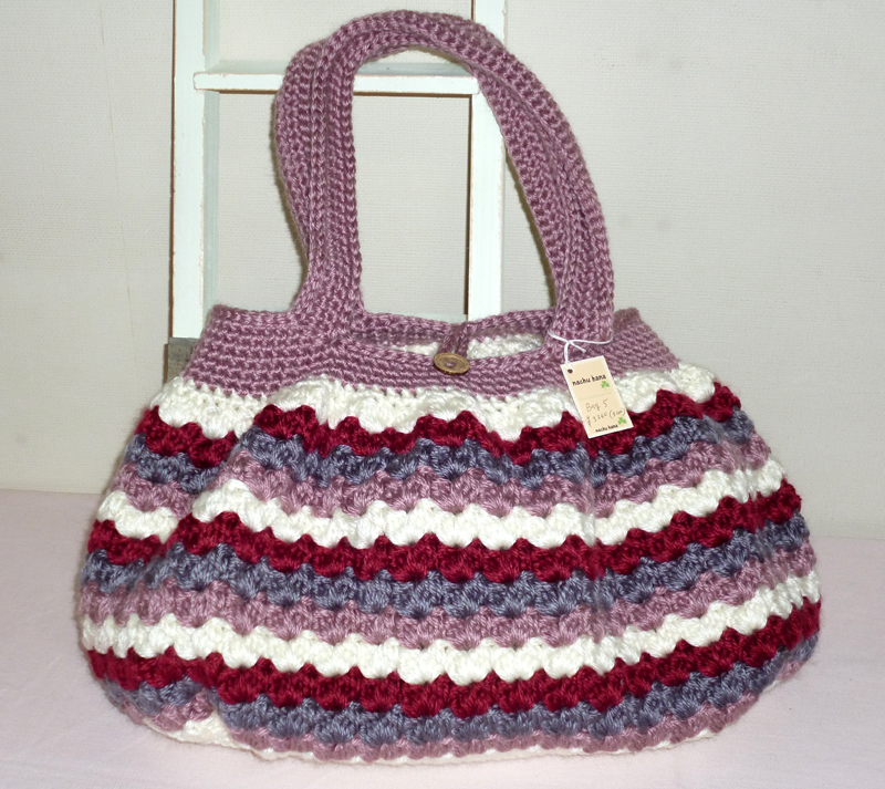 「なちゅはなさん」が、らしくない 「バック ¥3360」 編みました。 可愛いし! らしくない色の 「シュシュ ¥315」 も! 可愛いし! この寒さで、ついに・・・春が来たのか (´Д`)??