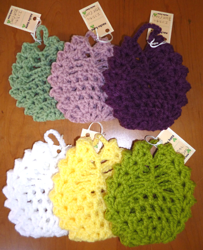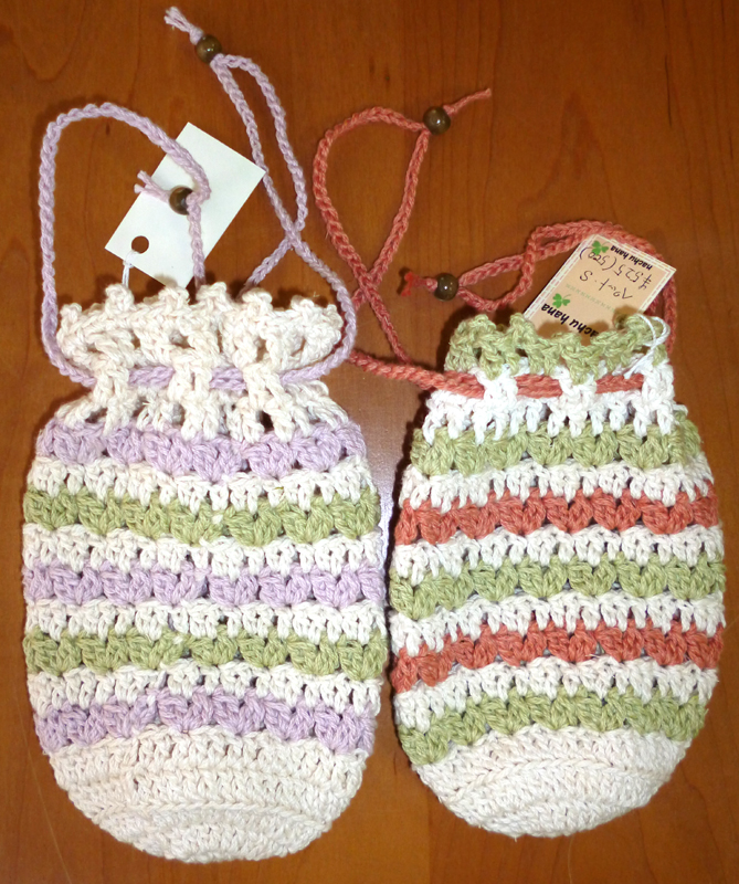 なちゅはなさん、可愛い形の 「エコタワシ¥210」 追加で編んでくれました。 お風呂洗いにも活躍するそうです。