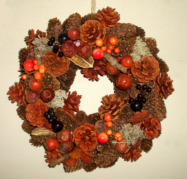 秋らしい、オレンジ色の木の実をあしらったリース。 ナチュラルなお部屋にもぴったりで、プレセントにもお勧めです。