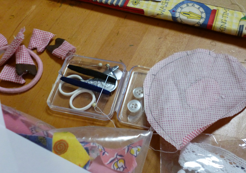 前回の、ブタさんを作っている生徒さんも。 塚ちゃんは目玉を捜索中。 智さんはバックが完成です。
