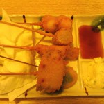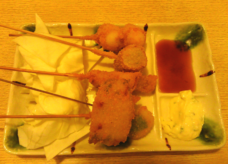 おつまみもなかなか。 「串揚げ5本 ¥500」