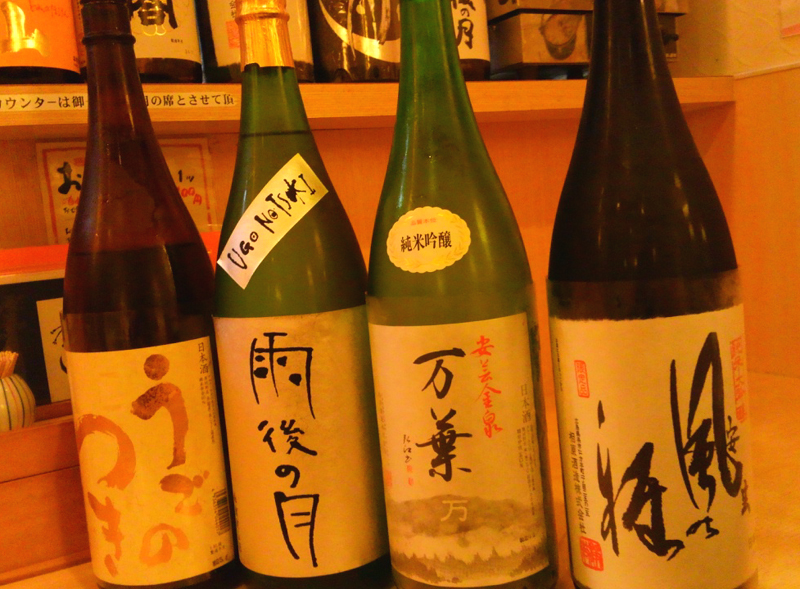 夜は日本酒も、かなり充実。 広島のお酒、頑張っています。 呉の相原酒造さんのお酒 「雨後の月」 いろいろあります。 仕込み水と一緒にいただきます。 うま。
