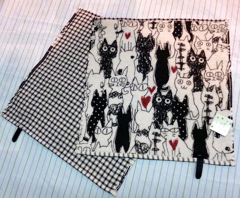 「猫のハンカチ ¥698」 裏がチェックのガーゼ素材です。 猫の尻尾がキュートです。