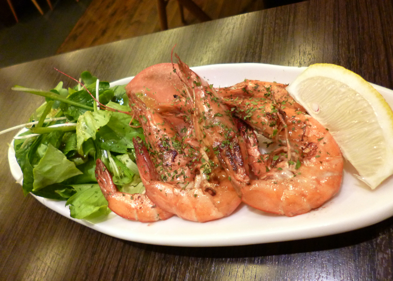 「ソフトシェルシュリンプの香草バター焼き 930円」 ビール、すすみます。