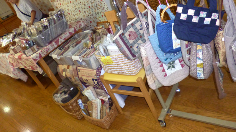 久しぶりの参加、塚ちゃんは、大量の布。 先染めの渋めの生地がいっぱい。 パッチワーク作品も、かなりお安めに販売。 このお値段、無いでしょ?