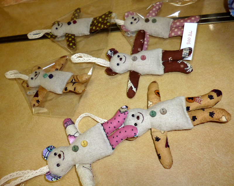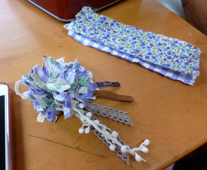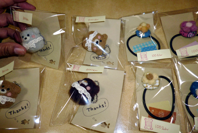 happy arrow さんも、時間の無い中、急いで人気のアイテムを作りました。 ワークショップは、コサージュとお手玉です。