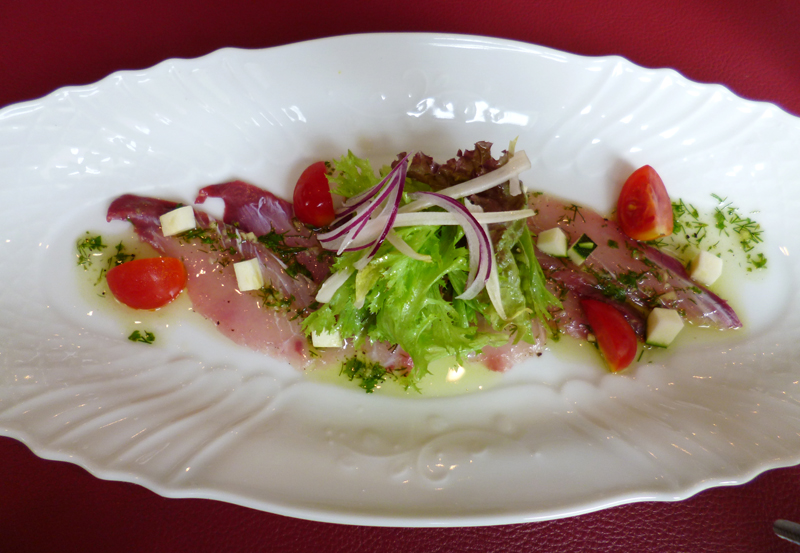 前菜 「イナダのカルパッチョ 香草ソース」 うまうましてる間に、お客様がだんだん増えてきました。 わいわいぺちゃくちゃ。 ここでは、ゆっくりお話しが楽しめます。