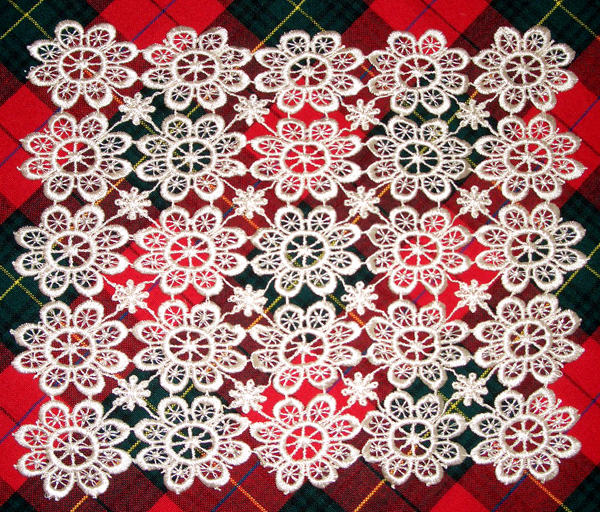 花のモチーフの可愛いレース。 大人気のサイズ(20X25cm ¥315) に、ひとまわり大きいサイズ (25X34cm ¥420)が、入荷しました。