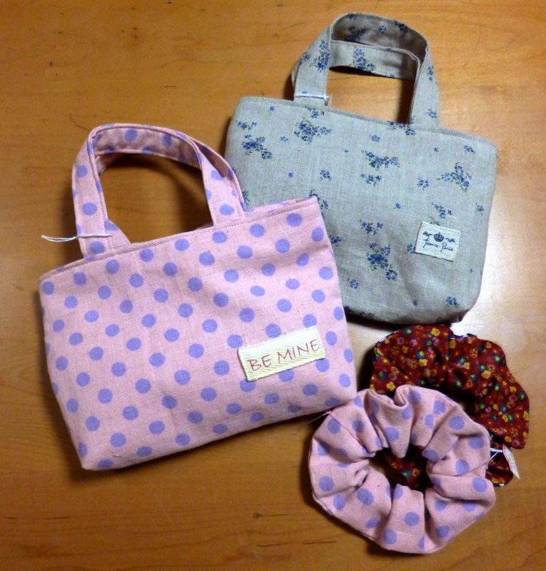 「ミニファスナーバック 麻100%¥1050 Wガーゼ¥998」