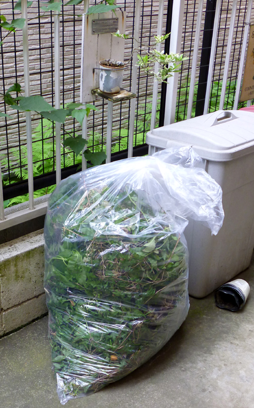 朝のうちに、家の周りのボウボウの草をなんとかやっつけました。