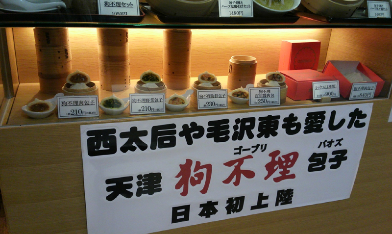 原画展で割引チケット(1000円で100円割引券)をもらったので、西武8F食堂街に。 中華気分だったので、初めてのお店 「狗不理」 ゴーブリ に。 天津本店では包子が有名らしいので、「包子4種とハーフ坦々麺セット ¥1480」 をいただきました。 お腹一杯です。