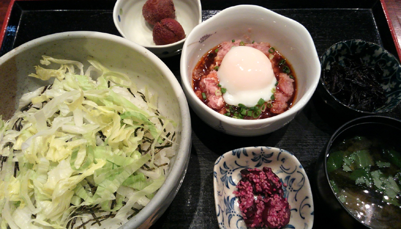 お昼は、いつもの 「あんしぇ」 さんで、「温泉卵乗せ まぐろ丼 ¥980」 温泉卵をまぐろにかき混ぜて、いただきます。 お姉さん優しいです。