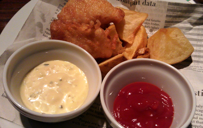 「フィッシュ&チップス 1/2 ¥600」 お魚が新鮮で、サクッとしているので、半分じゃなく一皿頼めば良かった。 くすん。 個人的には、ビネガーと塩でいただくのが好きです。