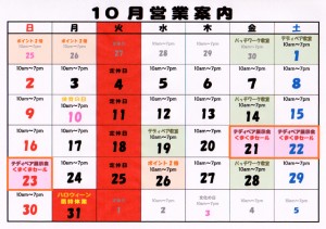 イベント: テディ・ベアの展示会 10月21日(金)・22日(土)・23日(日)10am~4pm 展示会中の、3日間はセールの予定です。