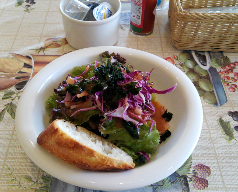 「ランチセット ¥1000」 は、サラダまたはスープ(フランスパン付き)、パスタとドリンクがセットです。 パスタは沢山種類があって選べます。