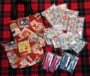 カレルチャペックの生地では、巾着袋と、ミニバックを縫ってくれました。