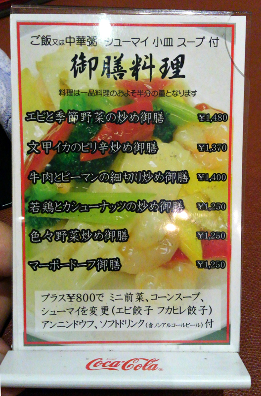 初めてなので、中国料理と点心をセットにした御膳料理を注文してみました。