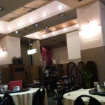 大きな階段を下りて行った地下のお店です。 ホールは広~い。 天井も高~い。 ホールの途中にある個室では宴会中な盛り上がり背広の方々が、ちらっと見えました。 ホールは私達だけ。 後、家族連れの方来店。