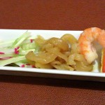 連れは、ソフトドリンク(ノンアルコールビール含む)に、そそられて、プラス¥800、「ミニ前菜、コーンスープ、シューマイを変更(エビ餃子、ふかひれ餃子)杏仁豆腐、ソフトドリンク付」 を追加。
