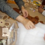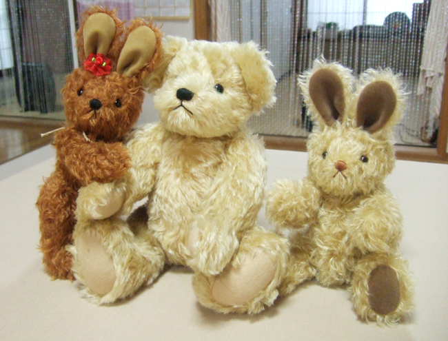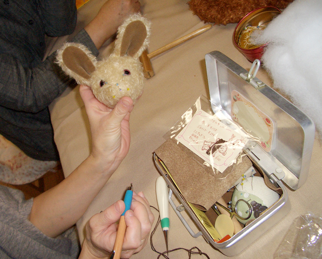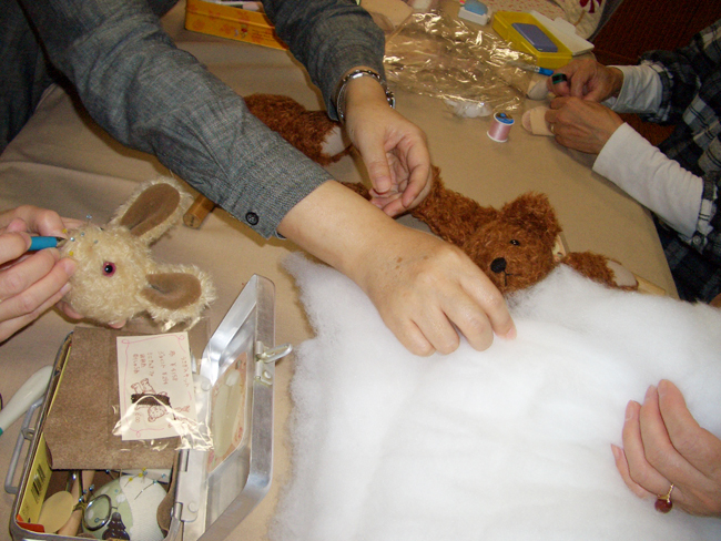 10月21日~23日は、テディ・ベアの展示会です。 生徒さんの作品も展示予定なので、1日土曜日の教室は、みんな頑張りました。 うさぎさんを作っている生徒さんもいます。 くまさんに綿をぎゅぎゅっと、詰めていきます。 形が出来てくると、とってもとっても可愛いのです。