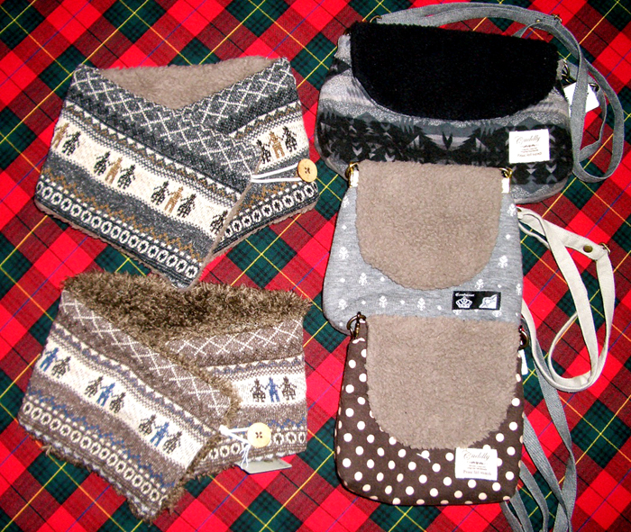 暖かポカポカの「ネックウォーマー ¥1260」 バネ口金付きも・・・「ナナメがけポーチ ¥2100」