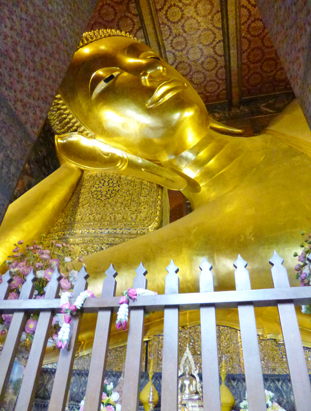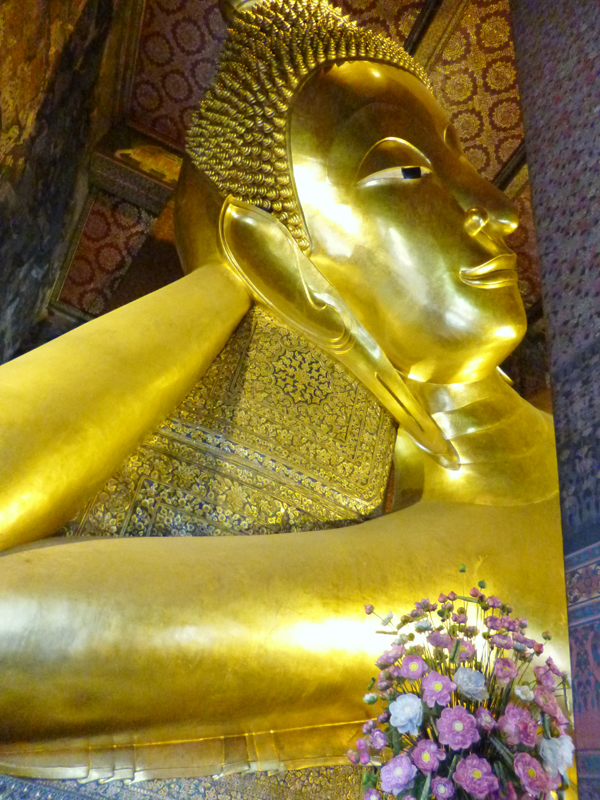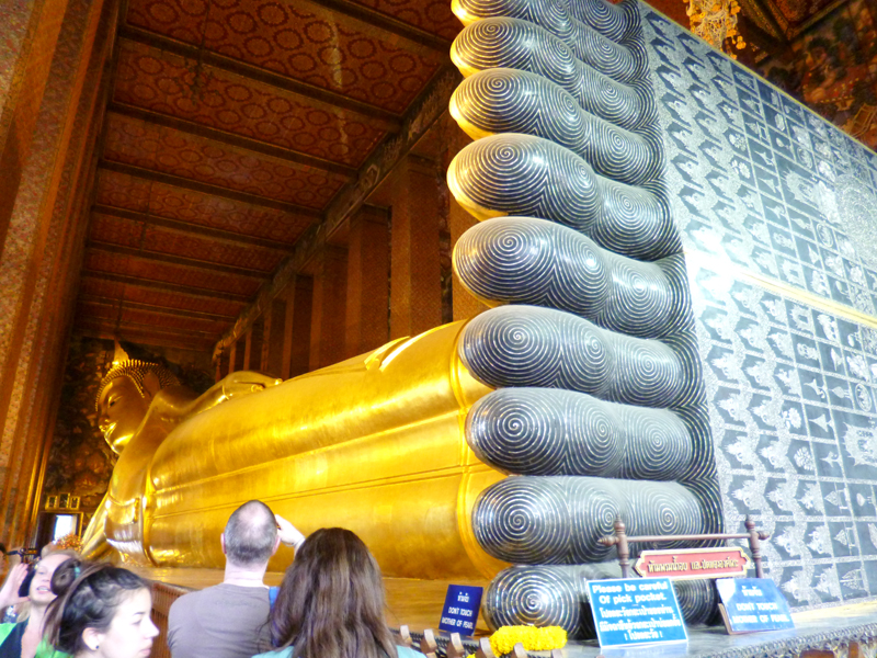 こちらは「Wat Pho (ワット・ポー)」の涅槃仏。 とても大きくてピカピカで立派です。 寺院も中国の影響を受けて、タイルで出来ていて、綺麗です。
