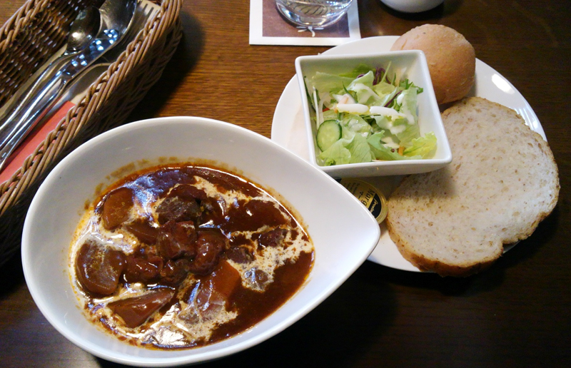 「オーナー4時起き!?ビーフシチュー ¥900」 プラス 「カフェ・ラテ ¥500」 で、ビーフシチューが¥700に。