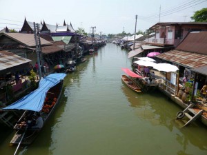 河の両岸にびっしり小さなお店がひしめいていて、その前のちいさな路地を歩いていきます。