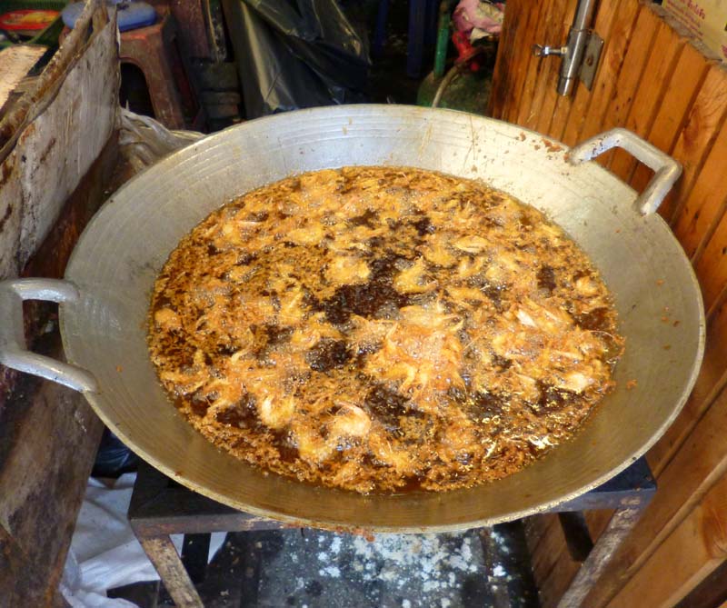 まずは、歩きながら「揚げたて小エビ」を食します。