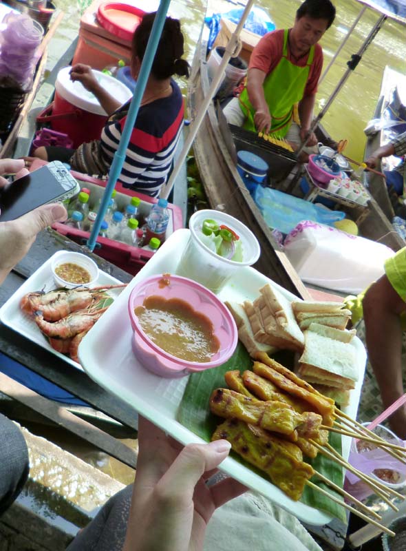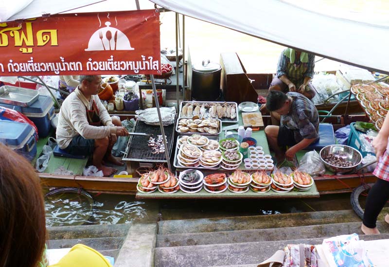 週末だけオープンしているという、地元っ子で賑わうフローティングマーケットに。
