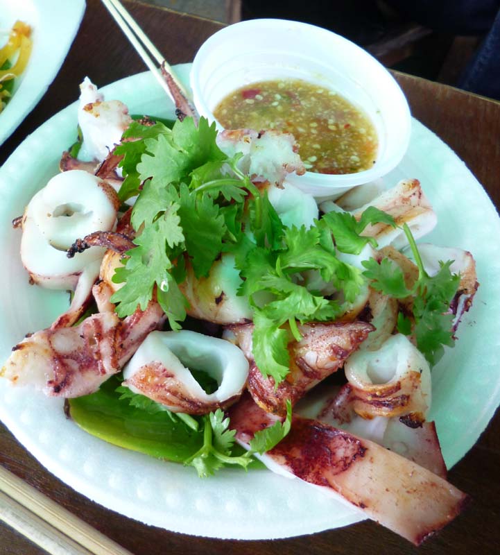 川岸際に、小さな椅子とテーブルがあって、そちらでいただけます。