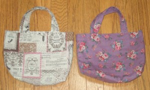 シックなプリントのトートバック 麻混で落ち着いた色調です。