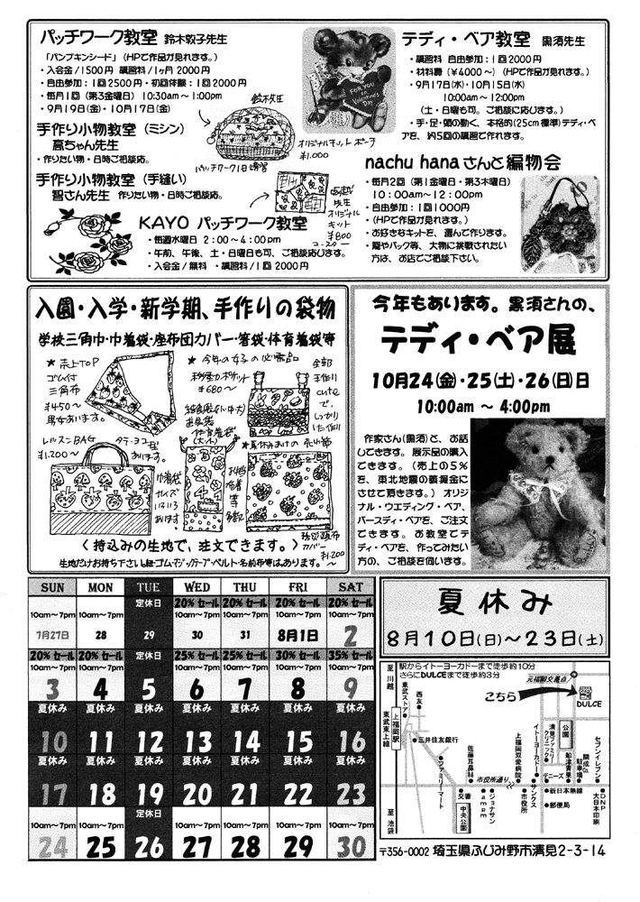 8月2日(土) 10:00am~4:00pm