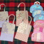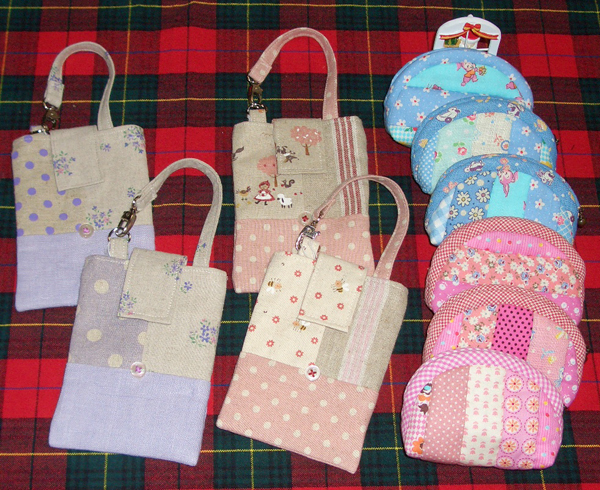 新しい形でボタンがCUTEな 「携帯ケース ¥1260」 大きめなので、スマホもデジカメも入ります。 「パッチワークポーチ ¥945・¥998」 ピンクとブルーで、可愛らしい柄です。