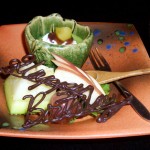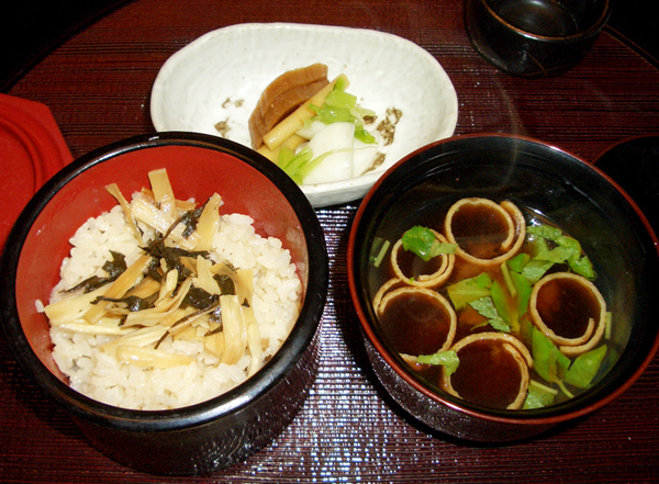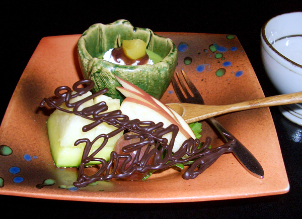 まこも茸の御飯に赤出汁、娘のデザートにはチョコレートで Happy Birthday がデコられていて、にっこり。
