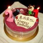 バースディケーキは、持込みさせて貰いました。 千川の「エコール・クリオロ」の、「Nirvana」ニルヴァナ。 世界パティスリー「プチガトー」部門で優勝したチョコレートケーキ。 ブラックベリーティーとチョレートのムースが大人な、甘すぎないケーキです。 うまうまうまうま・・・。