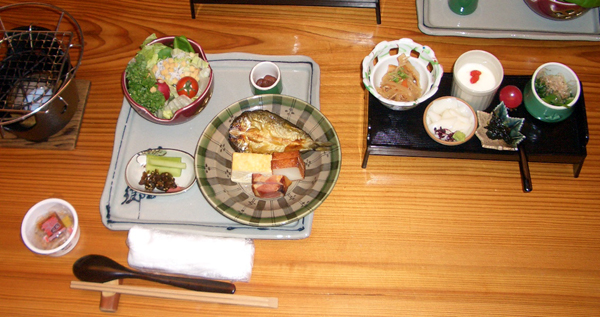 朝もゆっくりお風呂を頂いた後、朝食。 ちいさな器に並べられていて、楽しく頂きました。 あぶった鮎の一夜干し、美味しく頂きました。