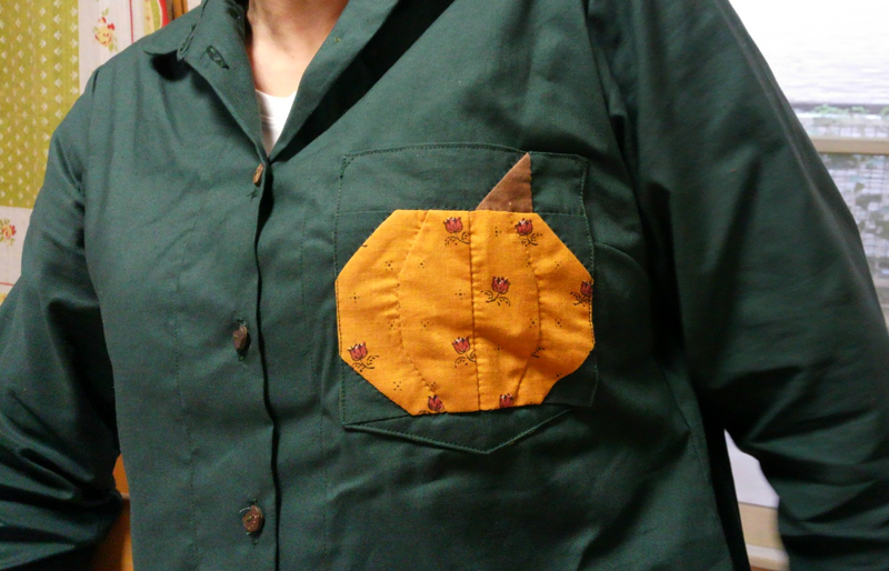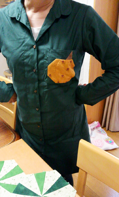高ちゃんは、ポケットかぼちゃに挑戦、トップが縫えました。 渋すぎ!