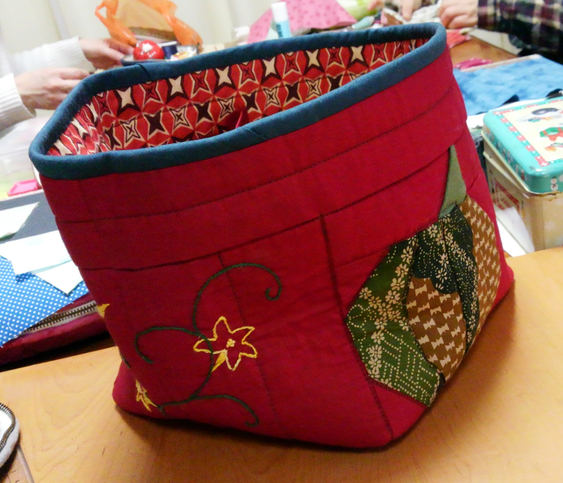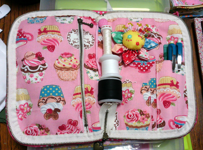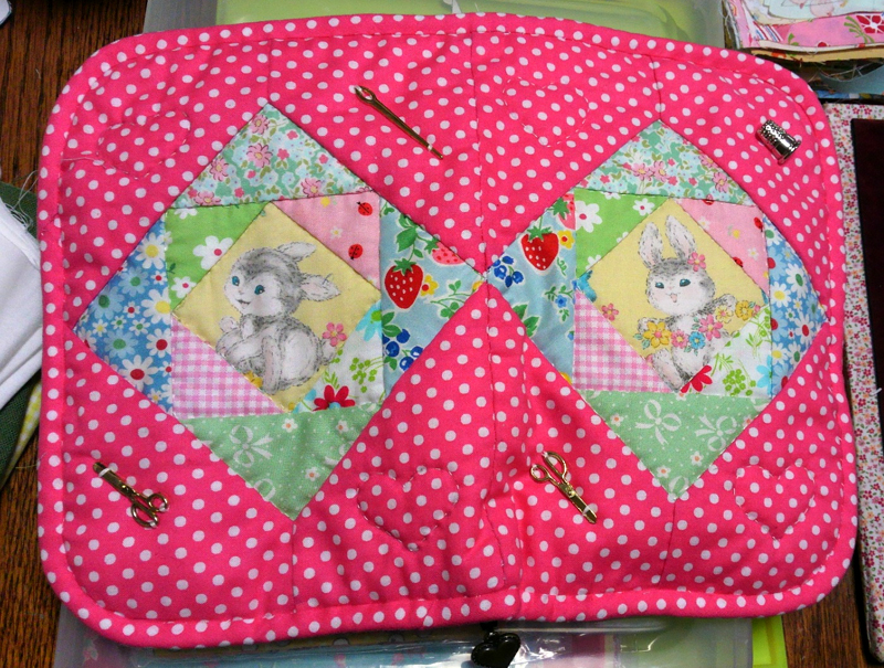 おお、三瓶さんはきれいな緑の裁縫道具ポーチ、完成してます。