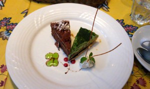 「チョコレートケーキと餅入り抹茶ケーキ」
