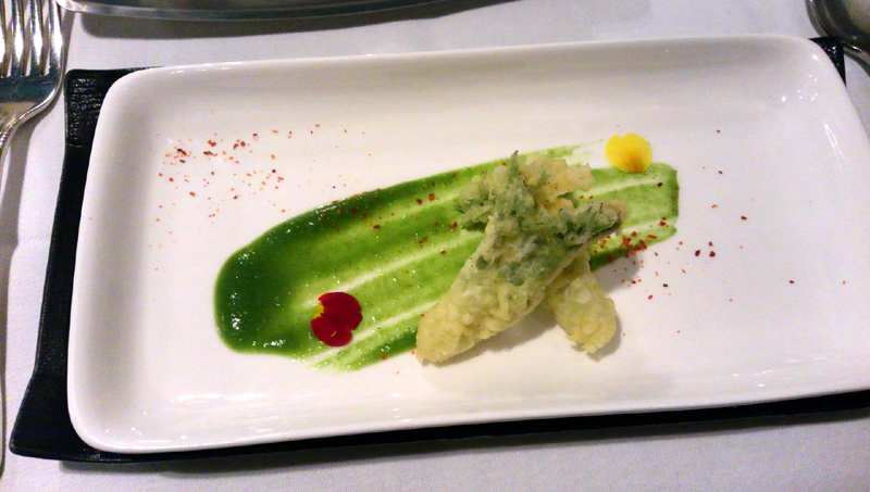 「プティ・ポワのムースと鰆の炙り かんきつ類の香り」