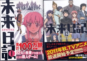 本日は、おたく友達に借りた 「未来日記 1~12 えすのサカエ」 最終巻が出たので、全巻12冊一気読み。 だんだん解らなくなって、ちょっと読み返したり、さらに解らなくなって、おうどん食べて寝ます。