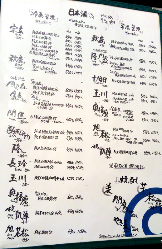 純米 吟醸酒 無濾過 山田錦 50/55 1合¥1300」