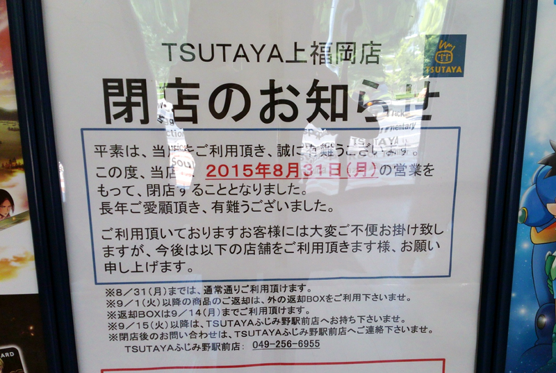 歩いて行けるビデオ屋さんが、無くなってしまった。(;*_*;)