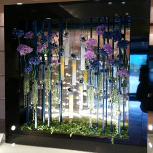 エントランスのお花と風鈴のアレンジが、幻想的です。