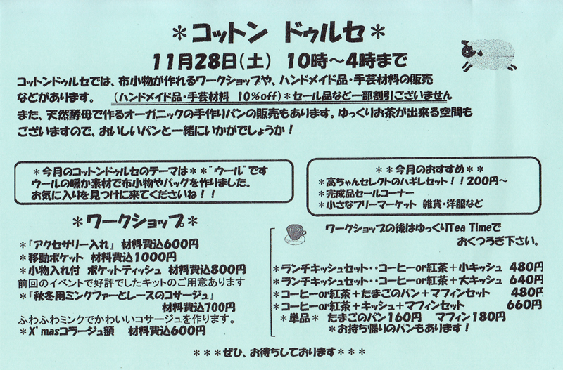 は、コットンDULCEの日に開催しています。