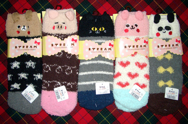 ふわふわのモールソックス ¥346 動物シリーズがプレゼントに大人気!!