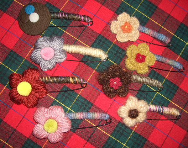 ショールピン (大)¥680 (小)¥500 毛糸のお花のかわいいピンです。