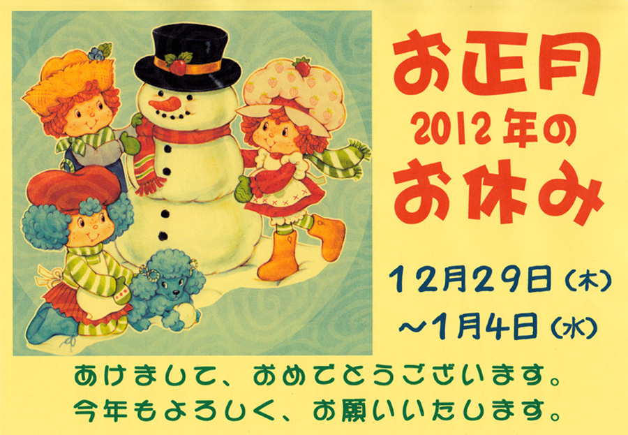12月29日(木)~1月4日(水)の1週間、お正月休みになります。 年末は、福袋を作っていますので、開いている時もありますが、不定時です。 年明けも、棚卸をやっていますので、開いている時もありますが、不定時です。 御用の方は、お電話してみて下さい。 261-9180 (いない時もあり、ご迷惑をおかけします。)